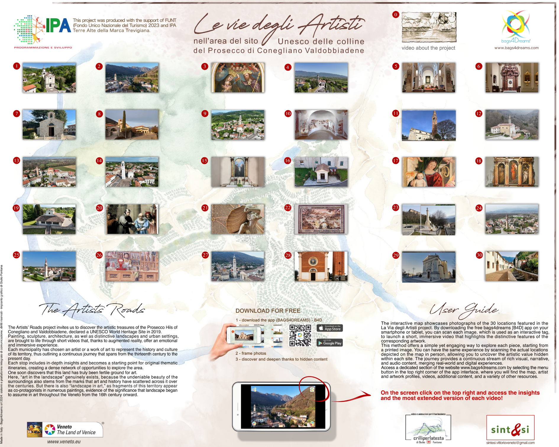 The interactive map showcases photographs of the 30 locations featured in the La Via degli Artisti project. By downloading the free bags4dreams [B4D] app on your smartphone or tablet, you can scan each image, which is used as an interactive tag, to launch a short, immersive video that highlights the distinctive features of the corresponding artwork.