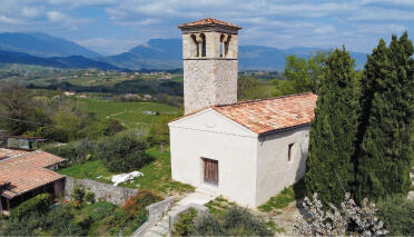 Su una delle dorsali che collega la pianura veneta alle Prealpi trevigiane, immersa in un paesaggio vitivinicolo davvero unico, si incontra la chiesa di San Giorgio di Manzana. Un piccolo edificio, affiancato da un campanile romanico, che ha almeno mille anni ed è collocato in posizione rialzata rispetto ad una strada che ha un tracciato molto antico.